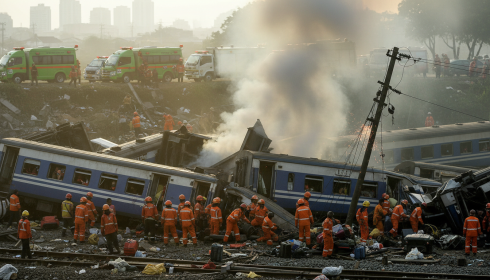 Emergency crews were rushed to the scene after two trains collided on a busy corridor, disrupting commuter movement and regional services. In a Live statement, Indonesia’s National Transportation Safety Committee confirmed it had deployed investigators and requested preservation of on board data recorders. The incident was treated as a fatal accident local authorities as they secured the rail right of way and shut down power to the line. Dispatchers coordinated with police to clear access roads for ambulances and fire engines. Today, rail staff were instructed to keep passengers away from the track area as recovery teams worked around unstable carriages. Officials said operations would remain suspended until safety checks were completed.