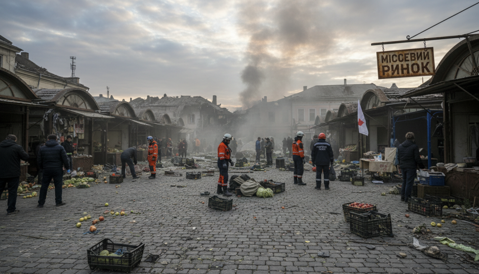 Emergency crews worked through debris after a Ukraine market attack left five dead and multiple people wounded, according to local authorities. Witnesses described a sudden blast that ripped through stalls and nearstorefronts, scattering goods across the roadway and igniting small fires that responders quickly contained. Investigators at the scene focused on fragments and crater patterns to identify the weapon used and establish the strike’s direction of travel. Medical teams triaged patients on site before transporting the most serious cases to regional hospitals, while police cordoned off surrounding streets to prevent secondary harm. Today the area remained under tight security, with residents advised to avoid the district as forensic teams completed their initial sweep.